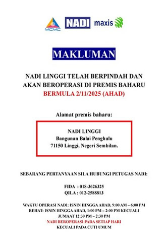 Makluman Pemindahan Tempat Baru NADI Linggi